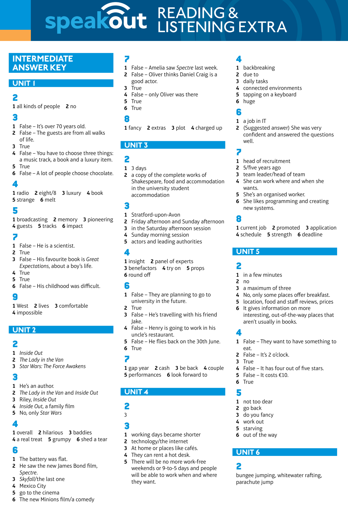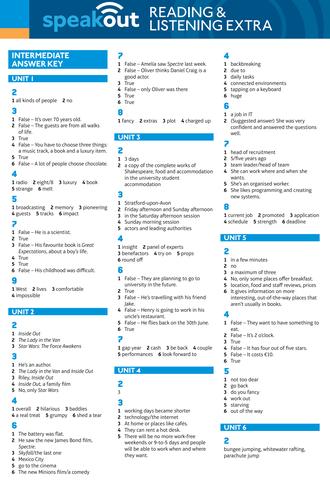 Speakout Intermediate - Reading & Listening Extra Answer Key