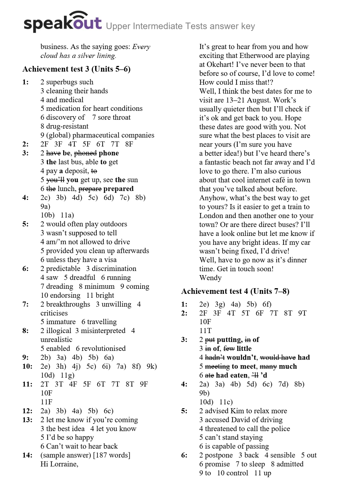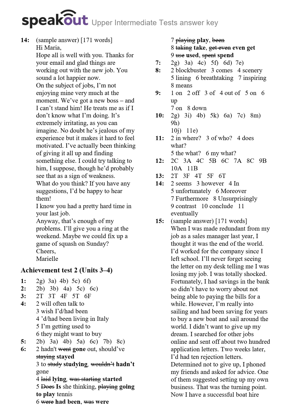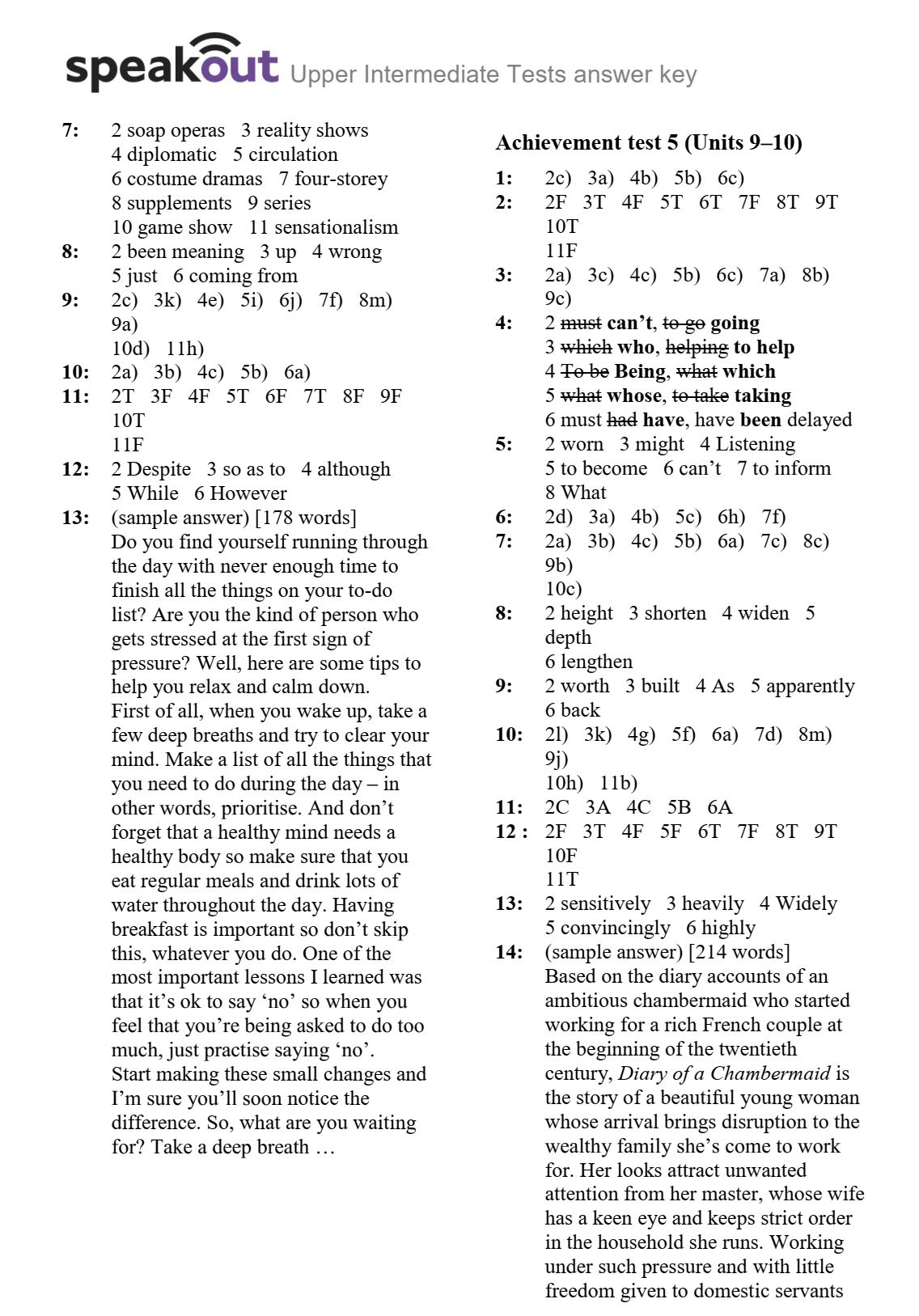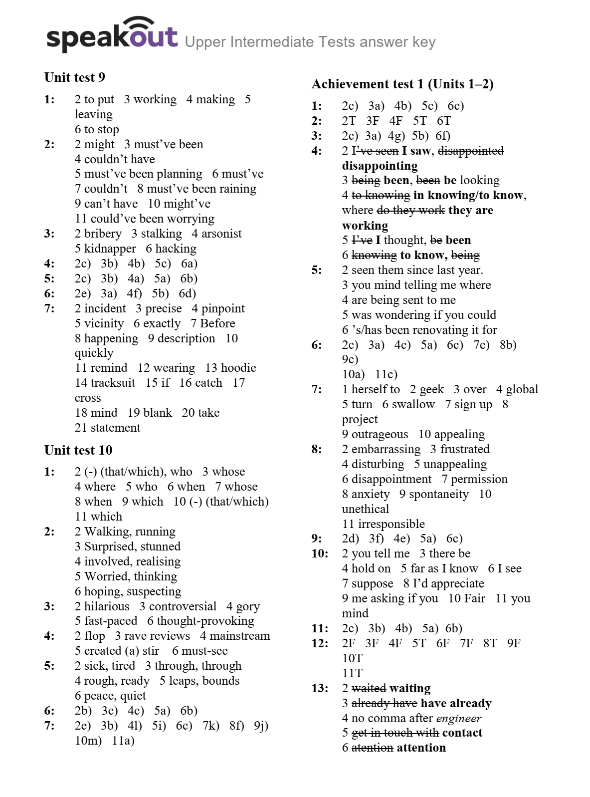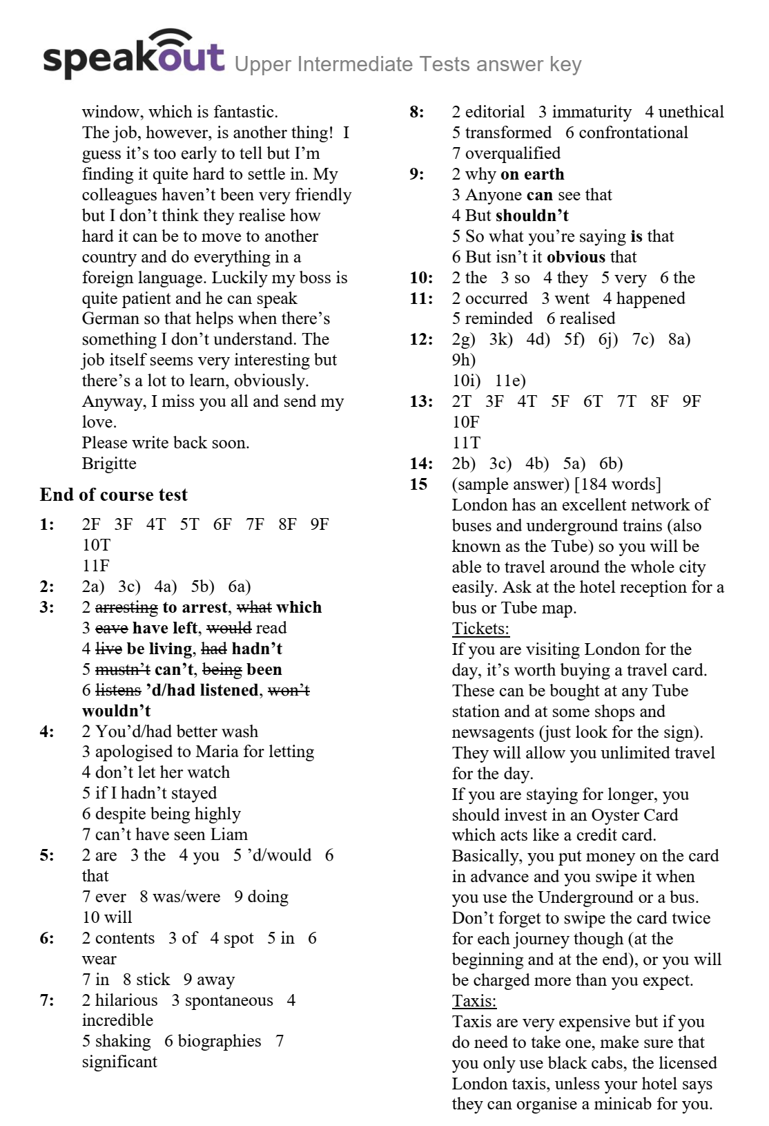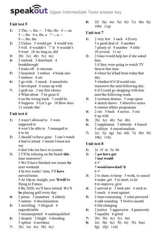 Speakout Upper Intermediate - Unit Tests Answer Key