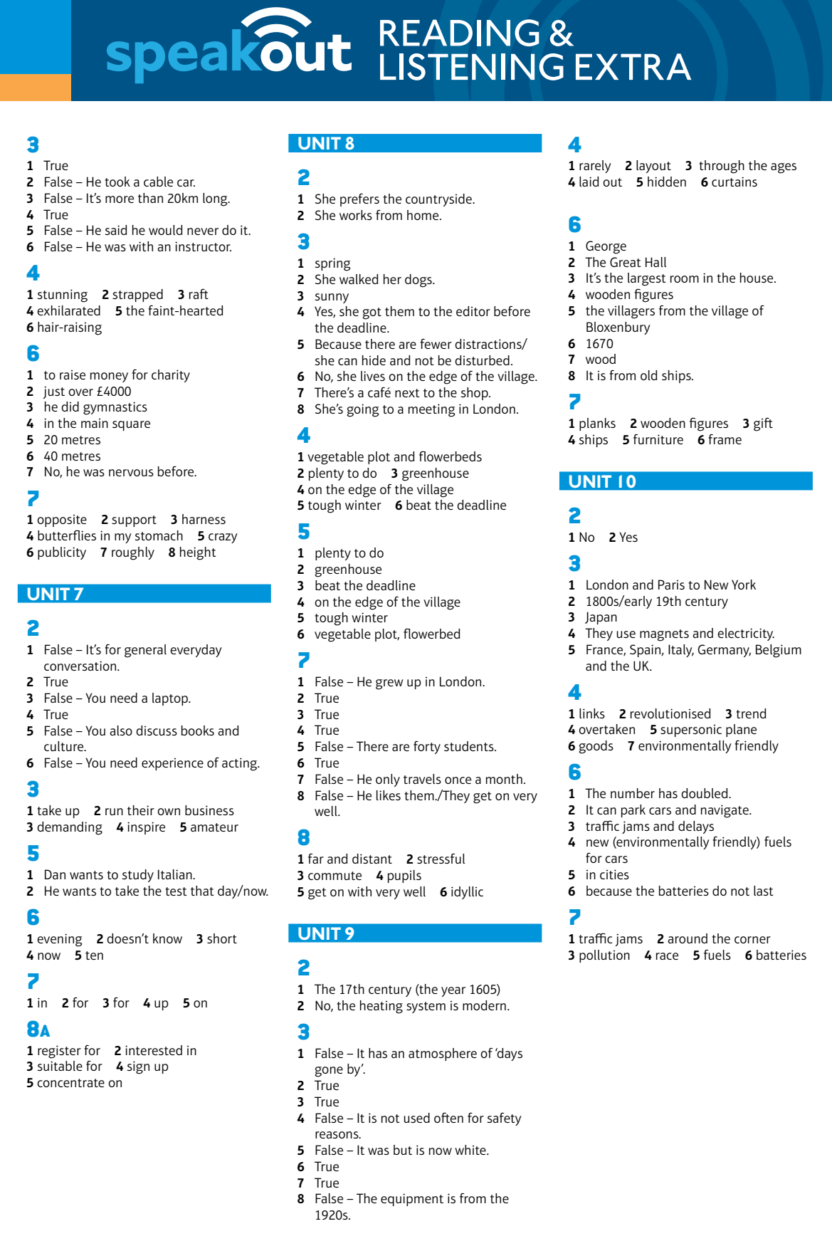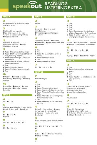 Speakout Pre-intermediate - Reading & Listening Extra Answer Key