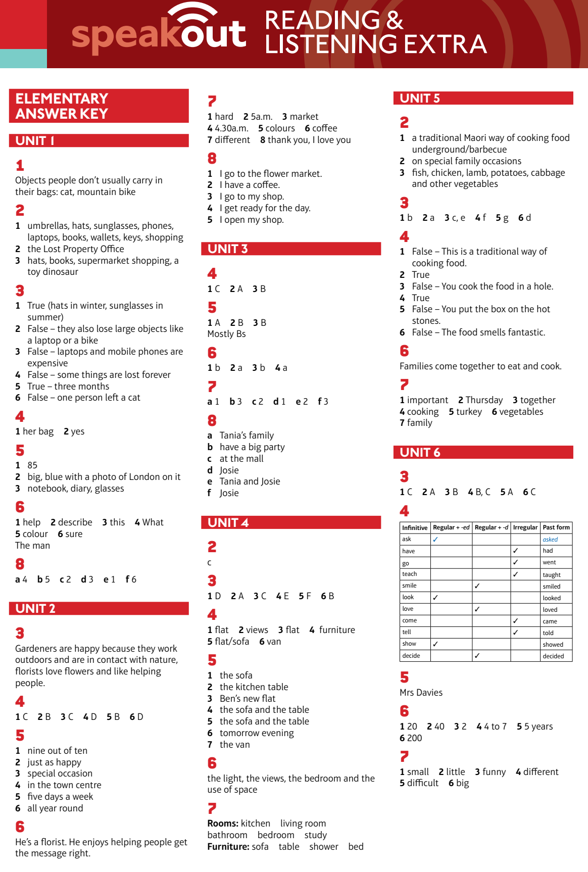 Speakout Elementary - Reading & Listening Extra Answer Key