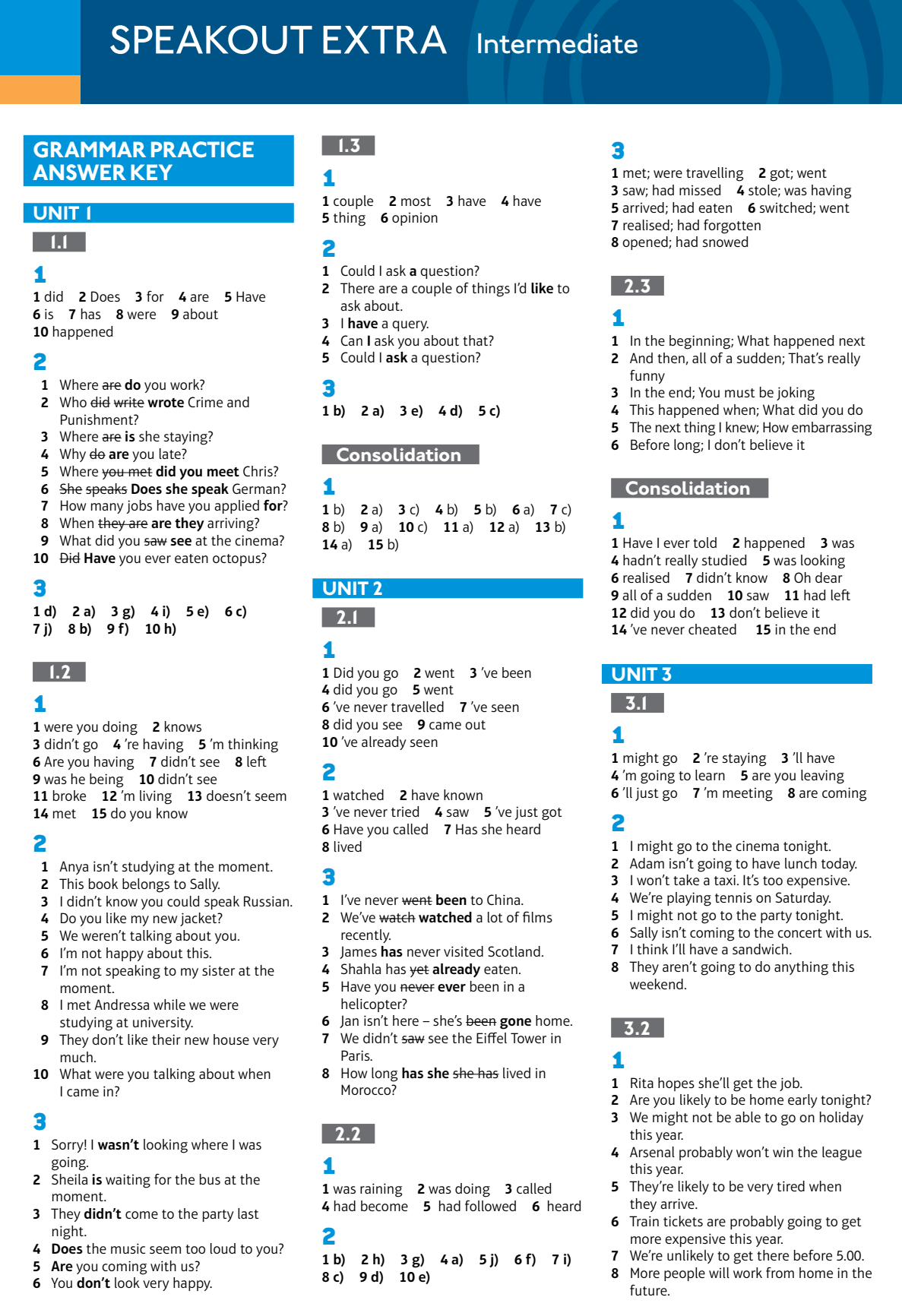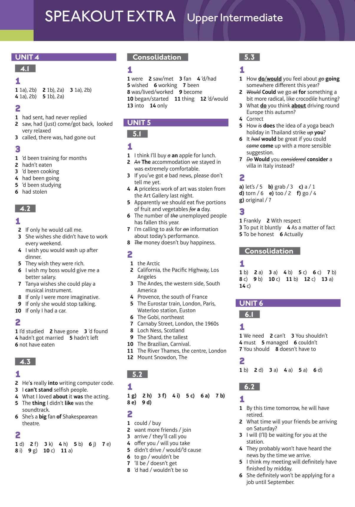 Speakout Upper Intermediate - Grammar Extra Answer Key