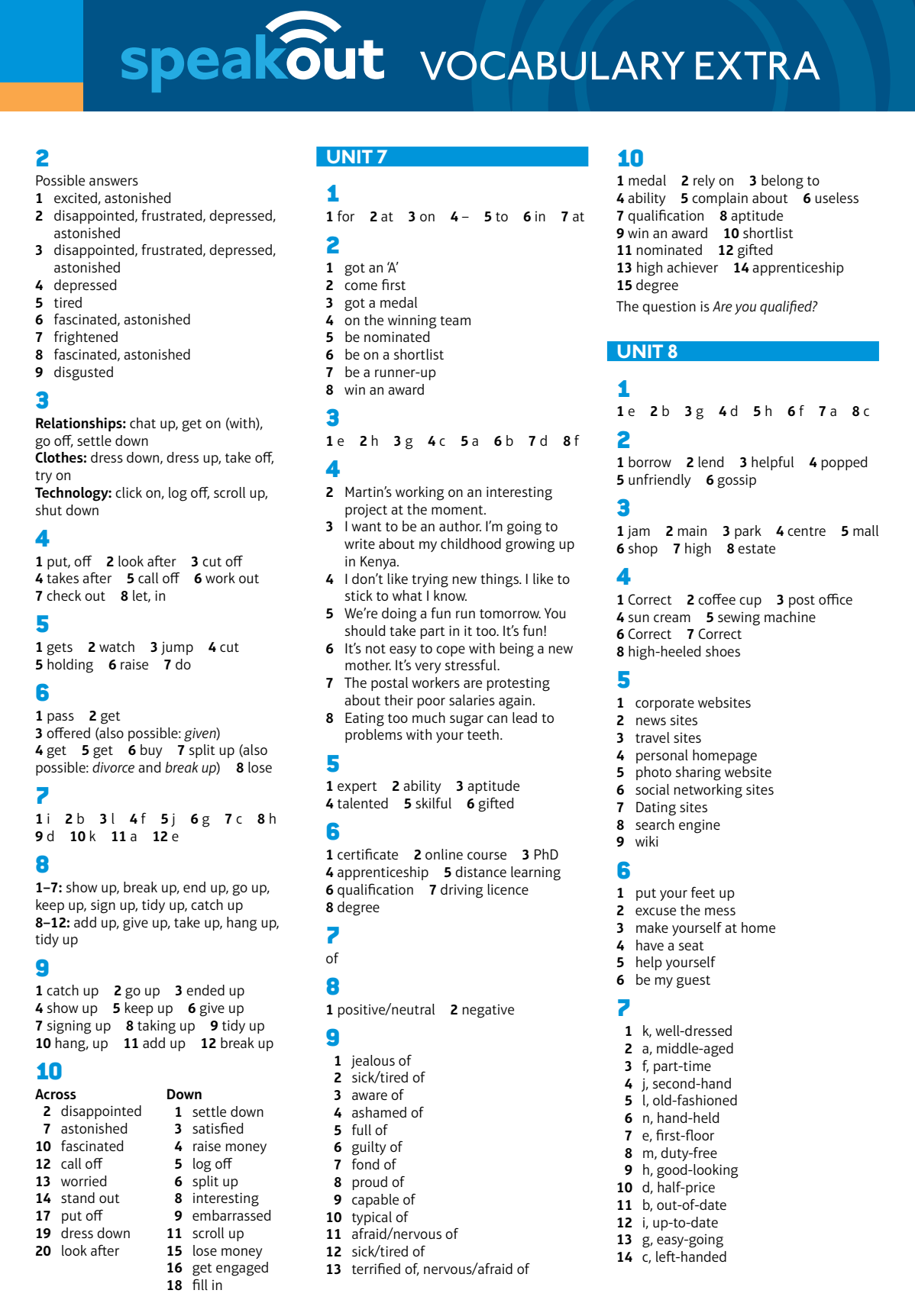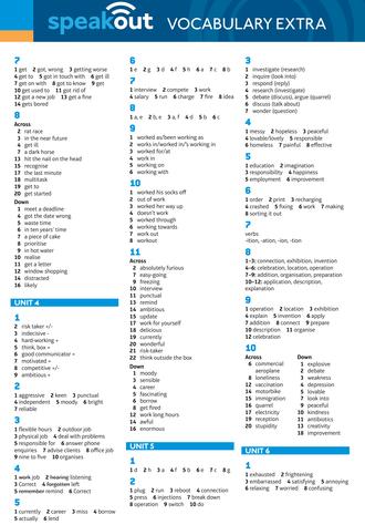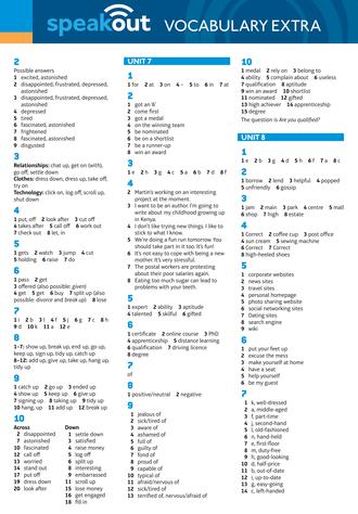 Speakout Intermediate - Vocabulary Extra Answer Key